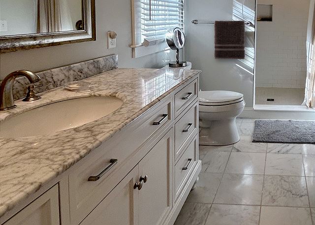 The cottage has 3 bedrooms that all have been updated. New wide pine floors are though out – some painted red to give it that classic New England feel. The original knotty pine living room and kitchen have been refreshed with new furniture and appliances while keeping their original charm. The new family room walks out onto a new porch and stone patio. The master suite addition was built in 2015, and has a large shower with teak bench. It also has a mini split heating and a/c system.